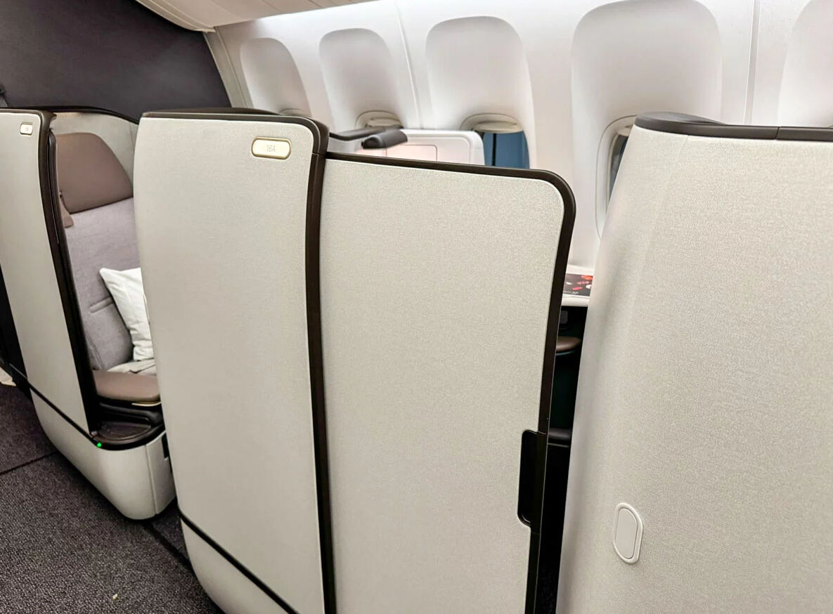 何も知らずに乗りこみましたが、搭乗した瞬間に空間全体が新しくなっていることに気が付いて気分が上がりました。ビジネスクラスはドアが完全に閉まる仕様に。